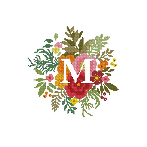 M Letter Cross Stitch Pattern Modern Floral Monogram Modern Etsy Hong Kong